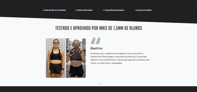 - Apresentação de depoimentos e histórias de sucesso: Incluí depoimentos autênticos de usuários satisfeitos e histórias de sucesso de pessoas que alcançaram seus objetivos de fitness utilizando a plataforma, aumentando a credibilidade e confiança na oferta.
